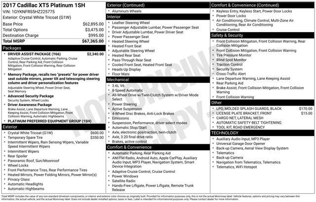 2017 Cadillac XT5 Platinum AWD 8-Speed Automatic 3.6L V6 DI VVT